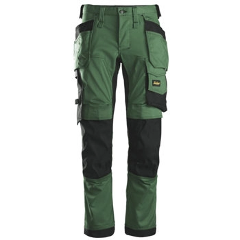 6241 Elastyczne spodnie z kieszeniami kaburowymi AllroundWork Snickers Workwear zielone