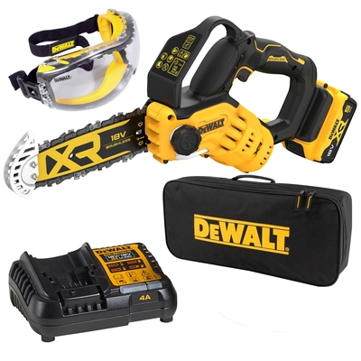 Akumulatorowa mini piła łańcuchowa do gałęzi 20cm DeWALT DCMPS520P1-QW 1x5Ah + Torba + Gogle ochronne