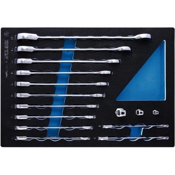 ZESTAW KLUCZY PŁASKO-OCZKOWYCH Z GRZECHOTKĄ JEDNOKIERUNKOWĄ 15cz. 8 - 22mm, Z ADAPTERAMI DO NASADEK, WKŁAD Z PIANKI EVA DO WÓZKA 9-10115MRV King Tony