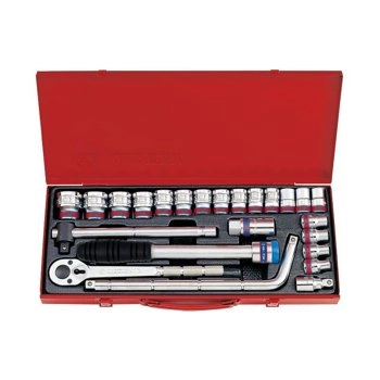 ZESTAW NASADEK 1/2" 24cz. KRÓTKIE 12-kąt. 10 - 32mm Z GRZECHOTKĄ I AKCESORIAMI, KASETA 4028MR King Tony