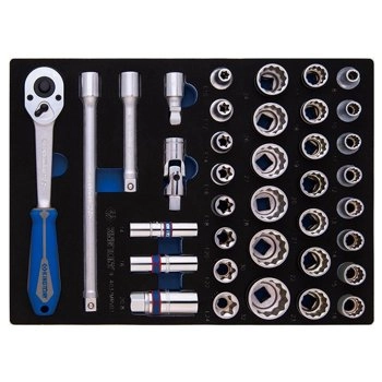 ZESTAW NASADEK 3/8" 44cz. KRÓTKIE 6-kąt.10-22mm,DŁUGIE 12-kąt. 8-19mm, Z AKCESORIAMI, WKŁAD Z PIANKI EVA DO WÓZKA 9-3544MRV King Tony