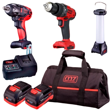 Zestaw narzędzi akumulatorowych M7 Mighty Seven M7PACK4 Klucz udarowy DW-401 + Wiertarko-wkrętarka DD-101 + Latarka DFL-101 18V 2x5Ah