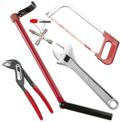 Zestaw narzędzi VIRAX (Uniwersalny klucz, Piła, Szczypce, Klucz nastawny, do umywalek)