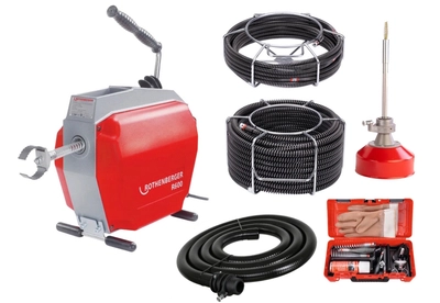 Urządzenie maszyna do czyszczenia rur kanalizacji ROTHENBERGER R600 19173 z zestawem 16/22mm + Magazynek wraz ze sprężyną 8mm/7,5m
