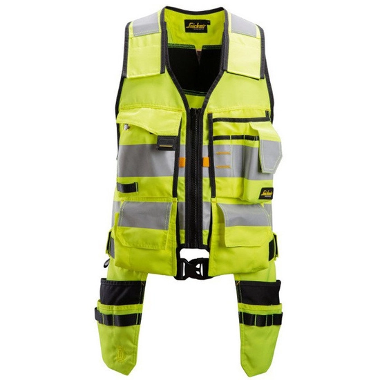- Wielofunkcyjna, odblaskowa kamizelka narzędziowa o ergonomiczny kroju, z wygodnymi szerokimi pasami na ramionach i elastycznym panelem na plecach. Wzmocnienia z materiału Cordura® we wszystkich istotnych miejscach.