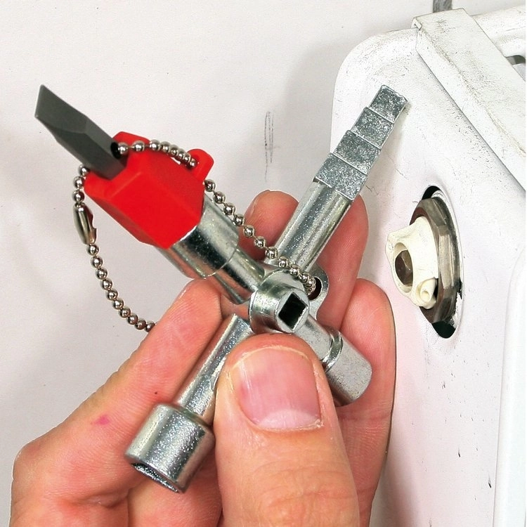 - Uniwersalny klucz elektryczny z 6 końcówkami: do szaf elektrycznych, instalacji sanitarnych, klimatyzacji, odpowietrzania grzejników.