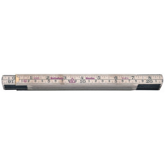 - Wykonana z brzozy, stalowe połączenia zapewniają cienkie sekcje i dużą elastyczność. Posiada skalę w kolorze czarnym po obu stronach, na górze metryczna, a na dole calowa.