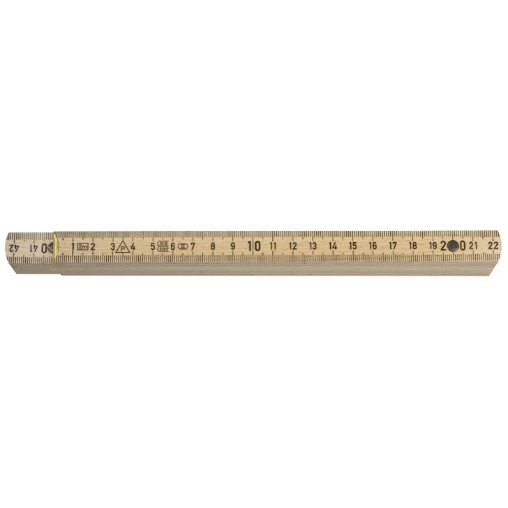 - Wykonana z drewna bukowego. Odcinki o grubości 3 mm zapewniają dodatkową stabilność. Skala metryczna w kolorze czarnym po obu stronach.