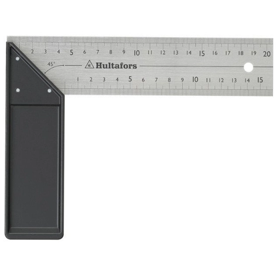 - Kątownik nierdzewny z podziałką milimetrową na górnej i dolnej krawędzi.