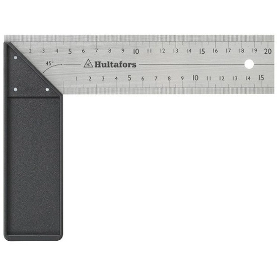 Kątownik nierdzewny z podziałką milimetrową na górnej i dolnej krawędzi. Rączka z plastiku ABS wzmocniona włóknem szklanym.