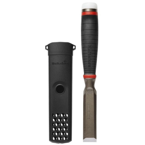 Dłuto o doskonałej precyzji. Gotowe do zadań wymagających wyjątkowej wytrzymałości i precyzji. Doskonałe szlifowane ostrze, ścięte pod kątem 25° dla najlepszego możliwego stosunku pomiędzy ostrością i trwałością. Dłuto wraz z uchwytem można ustawić płasko na powierzchni w celu rozszerzonego zastosowania. Kabura wykonana z trwałego plastiku PP. Kabura może być łatwo przymocowana do paska.