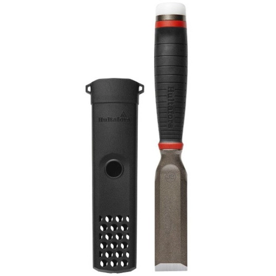 Dłuto o doskonałej precyzji. Gotowe do zadań wymagających wyjątkowej wytrzymałości i precyzji. Doskonałe szlifowane ostrze, ścięte pod kątem 25° dla najlepszego możliwego stosunku pomiędzy ostrością i trwałością. Dłuto wraz z uchwytem można ustawić płasko na powierzchni w celu rozszerzonego zastosowania. Kabura wykonana z trwałego plastiku PP. Kabura może być łatwo przymocowana do paska.