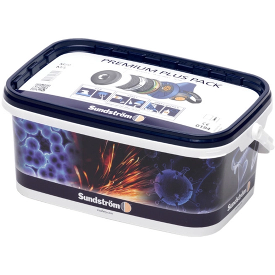 - Półmaska SR 100/filtr cząstek stałych SR 510 P3 R/filtr przeciwgazowy SR 297 ABEK1/filtr wstępny/oprawa filtra wstępnego/chusteczka czyszcząca.