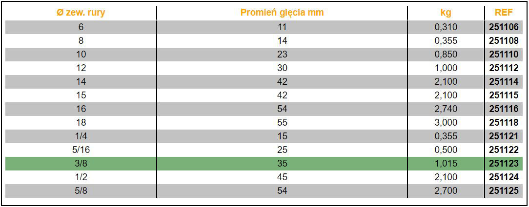 - Do miedzianych twardych i miękkich : Ø 6 - 18 mm i Ø 1/4" - 5/8 OD / grubości 1 - 1,2 mm.