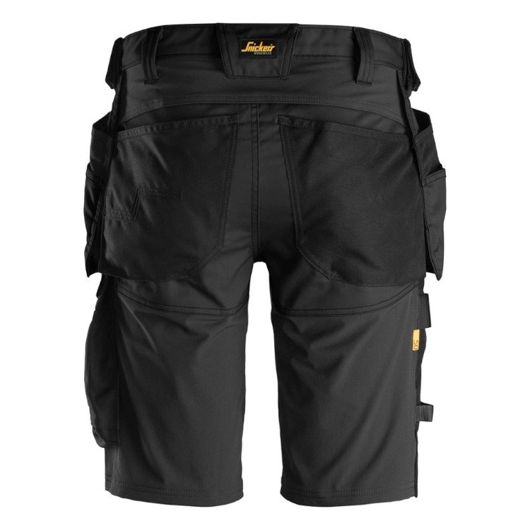 - Krótkie spodnie robocze o dopasowanym kroju z workami kieszeniowymi. Zapewniają zwiększoną elastyczność i wygodę dzięki 4-stronnie elastycznemu materiałowi, strategicznie umieszczonemu z tyłu i w kroku.