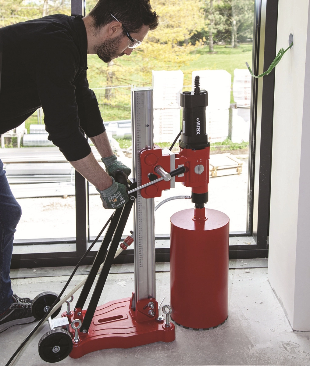- Wiercenie na wodę ze statywu w betonie zbrojonym, materiałach ciernych, cegłach, kamieniu, ... do Ø 250 mm.