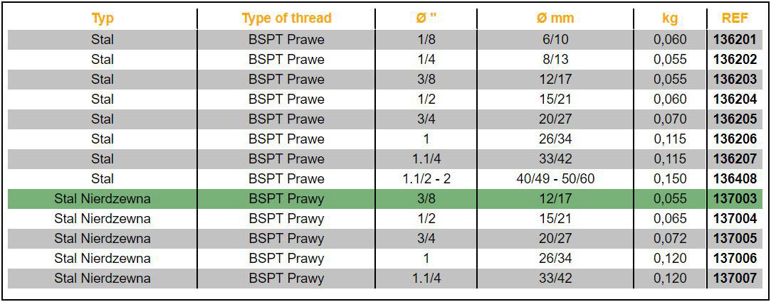 - Rury muszą być zgodne z normami EN 10255 S i EN 10255 W (dawne normy NFA 49115 i NFA 49145 seria średnia i mocna); nie zaleca się używania do rur stalowych serii lekkiej.