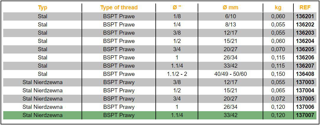 - Rury muszą być zgodne z normami EN 10255 S i EN 10255 W (dawne normy NFA 49115 i NFA 49145 seria średnia i mocna); nie zaleca się używania do rur stalowych serii lekkiej.