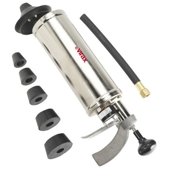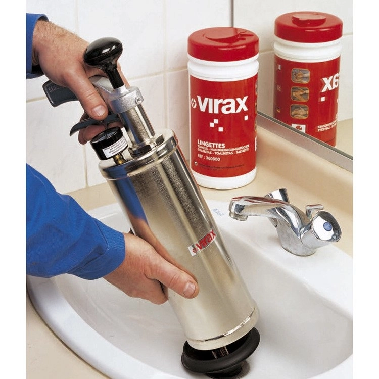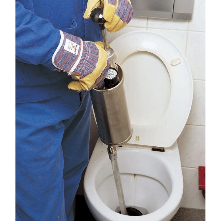 - Przepychacz ten używa energię kinetyczną zmagazynowaną w cylindrycznym zbiorniku (maks. 6 barów) by rozbić korek z tłuszczu, mydła, środków piorących, włosów,papieru, szmat…