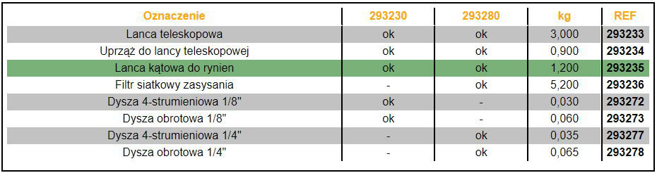 - Lanca kątowa do rynien: Czyszczenie rynien; Działa tylko z lancą teleskopową nr kat. 293233.