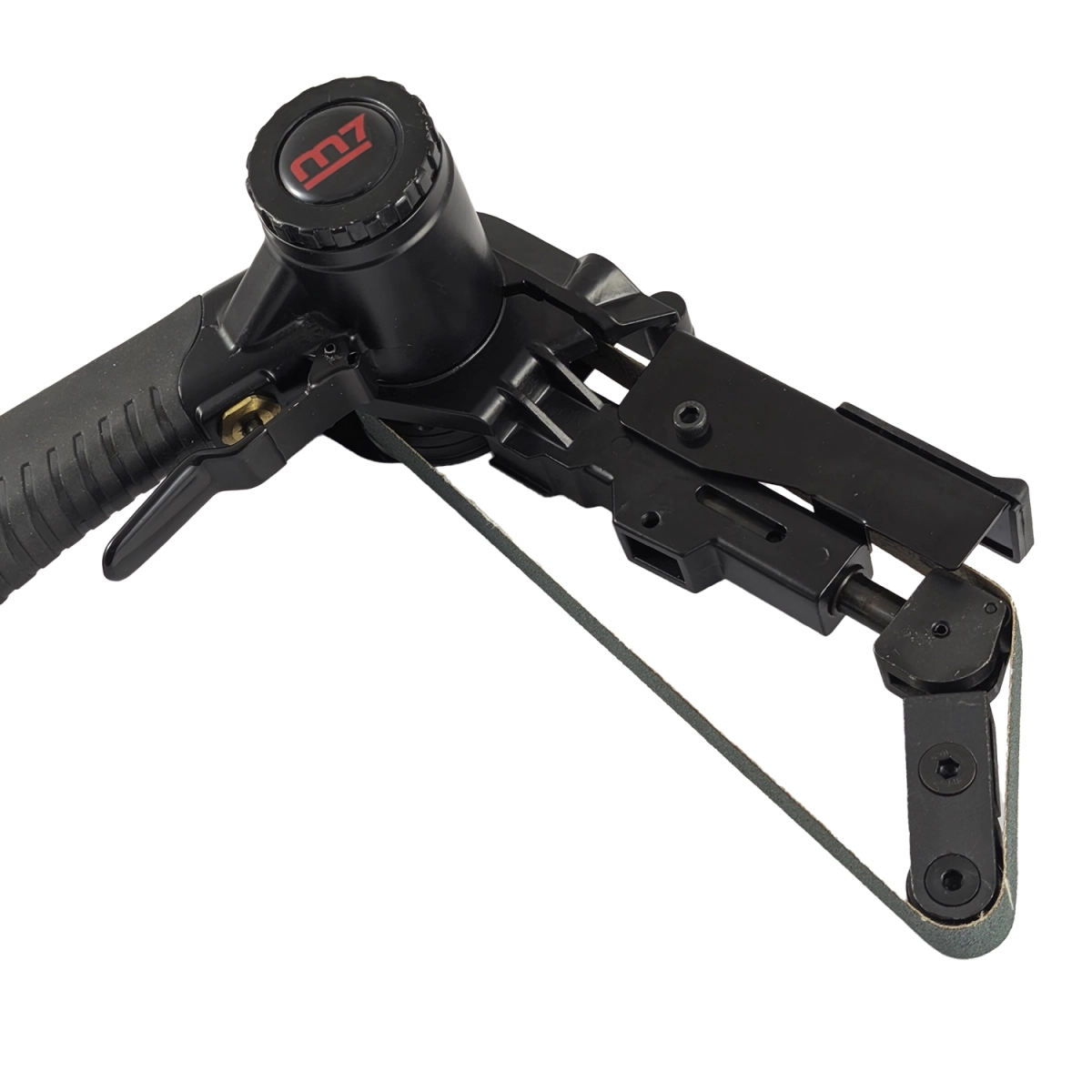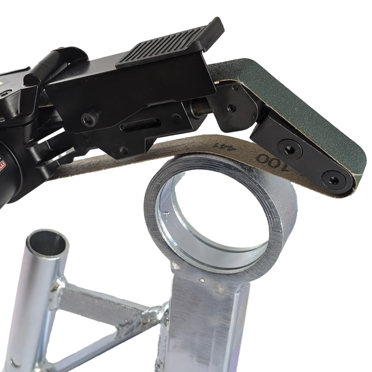 Urządzenie wyposażono w profilowaną rolkę prowadzącą, która stabilizuje położenie taśmy ściernej podczas obróbki, co przekłada się na najwyższą precyzję i jakość pracy. System montażu i demontażu taśmy bezkońcowej został zaprojektowany z myślą o szybkości i wygodzie – odbywa się błyskawicznie i nie wymaga dodatkowych narzędzi.