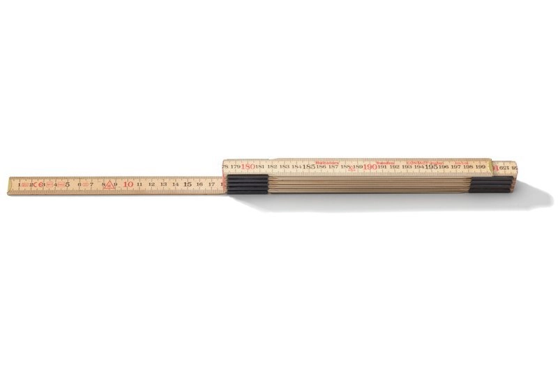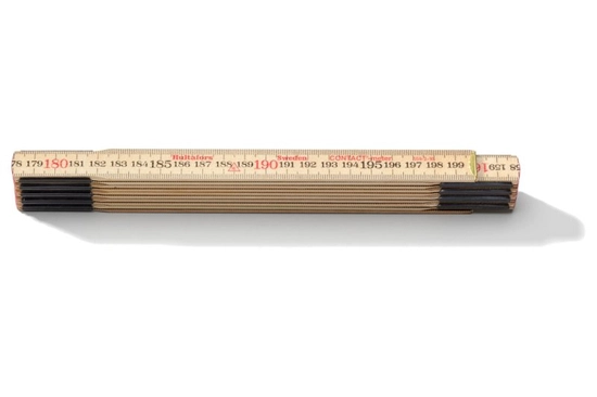 Miara stolarska wykonana z brzozy. Służy do pomiaru bezpośrednio na powierzchniach. Stalowe połączenia zapewniają cienkie sekcje i dużą elastyczność. Posiada skalę metryczną po obu stronach. Dwa kolory dla skali. Czarny dla milimetrów i centymetrów. Czerwony dla decymetrów.