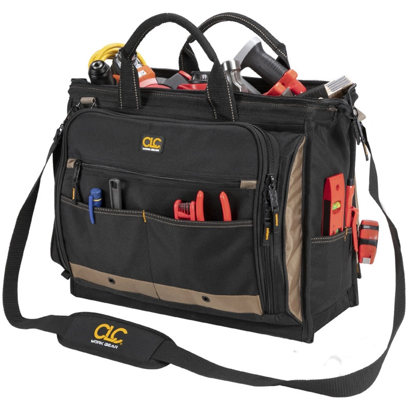 Wielokomorowa torba na narzędzia z dużą komorą środkową na elektronarzędzia i dwoma zapinanymi na zamek panelami bocznymi oraz z wieloma kieszeniami na wszystkie Twoje ulubione narzędzia ręczne. Ma wyściełane uchwyty i regulowany pasek na ramię.