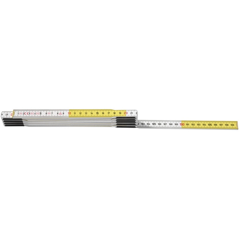 Miara składana w wersji środkowoeuropejskiej wykonana z drewna bukowego ze z łączeniami ze stali szwedzkiej. Sekcje o grubości 3 mm zapewniają dodatkową stabilność. Skala metryczna w kolorze czarnym po obu stronach i czerwone cyfry decymetrowe.
