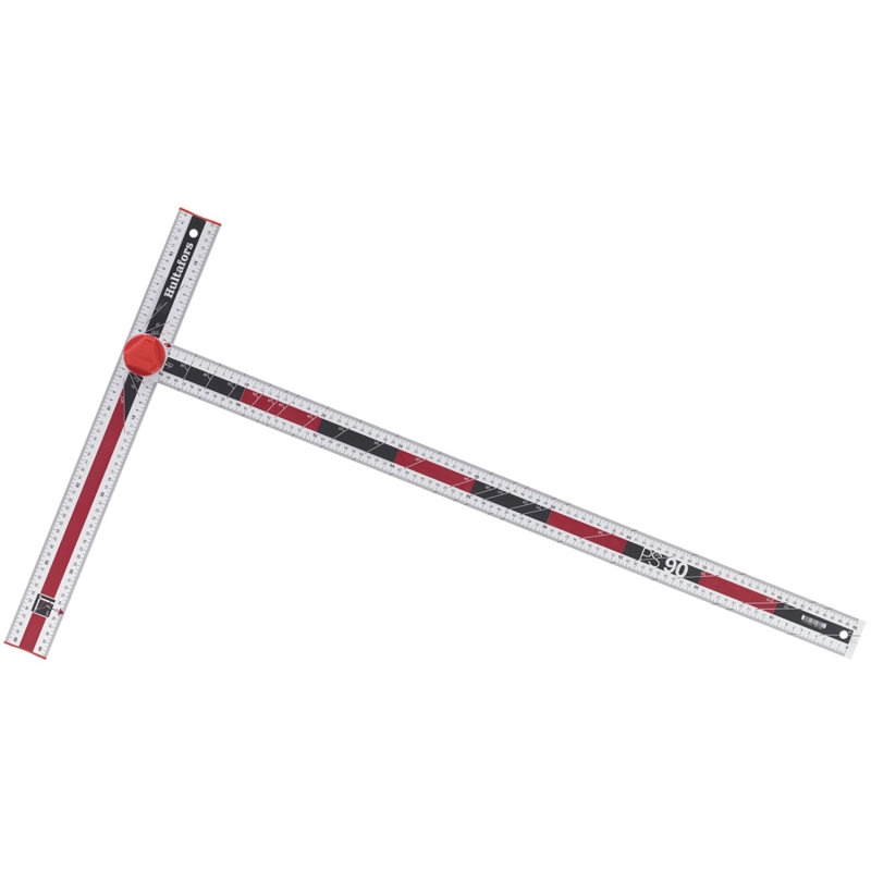 Kątownik budowlany nastawny, z podziałką milimetrową i stopniową, z możliwością ustawienia w czterech stałych pozycjach. Stopę i ramię można złożyć razem, co ułatwia przechowywanie i transport. Można także łatwo zamieniać jego układ z prawego na lewy. Podziałka w modelu PS jest zaprojektowana w taki sposób, aby zapewnić szybki odczyt i możliwość czyszczenia produktu bez uszkodzenia skali.
