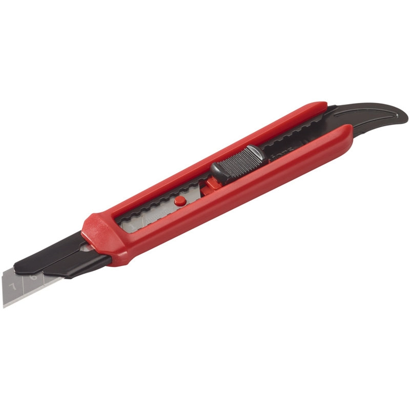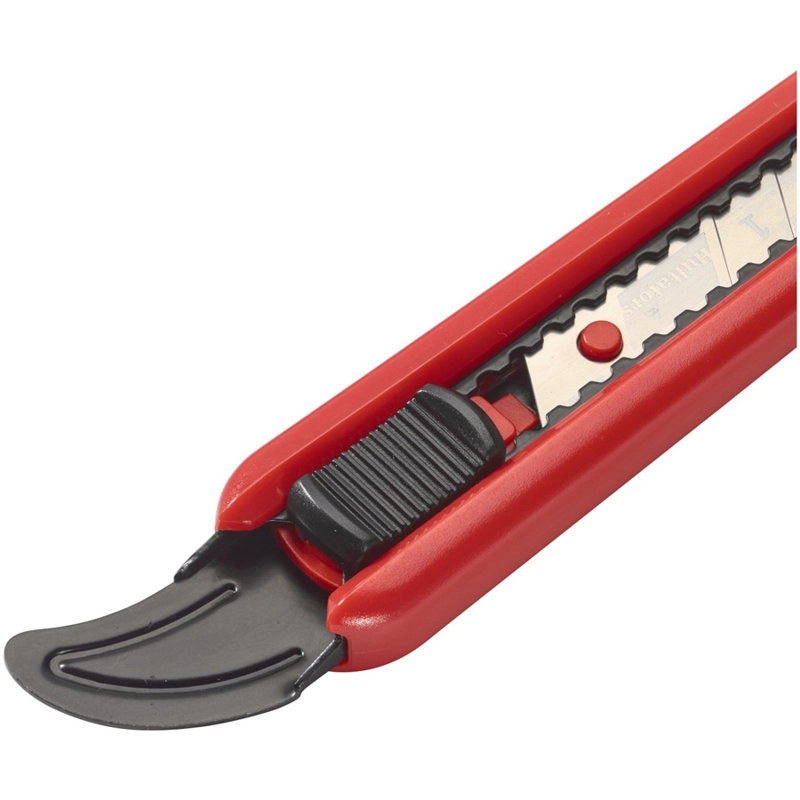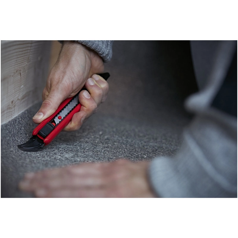 Wąski nóż z wygiętą płetwą, do wszechstronnego użytku, np. cięcia plastiku, kartonu i usuwania izolacji z przewodów. Smukła konstrukcja ułatwia przechowywanie w kieszeni. Zwężany koniec dla lepszej widoczności, dostępu oraz kontroli. Wygięta płetwa pomaga w podkładaniu dywanów lub otwieraniu puszek. Wykonany z wytrzymałego tworzywa sztucznego PC (poliwęglanu) ze stalowym rdzeniem dla wzmocnienia. Metalowa prowadnica ostrza o grubości 1 mm dla dodatkowej stabilności.