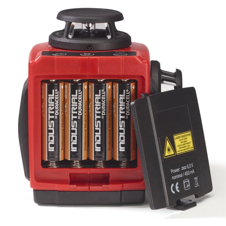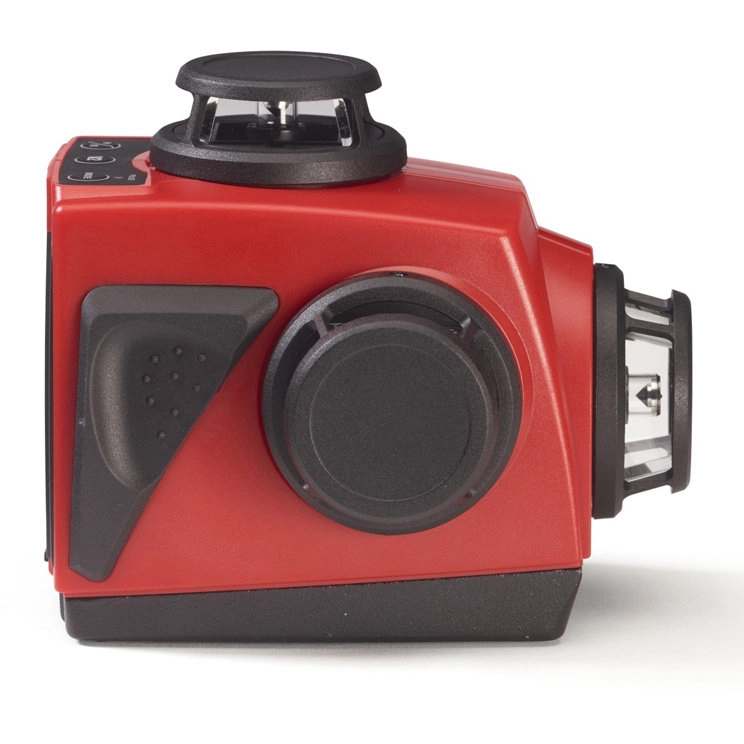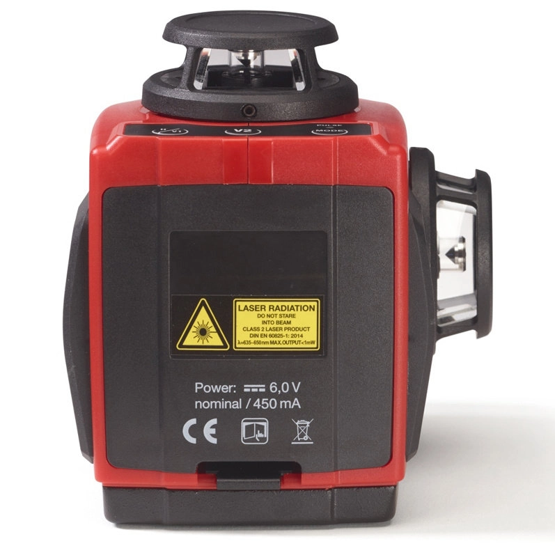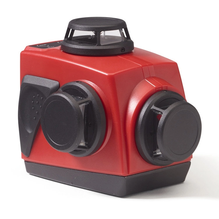 - Kompaktowy laser z jedną poziomą i dwiema pionowymi liniami w zakresie 360°, cechujący się tolerancją pomiaru zaledwie 0,2 mm/m. Razem z poziomą linią lasera 360° linie pionowe tworzą kąty proste,