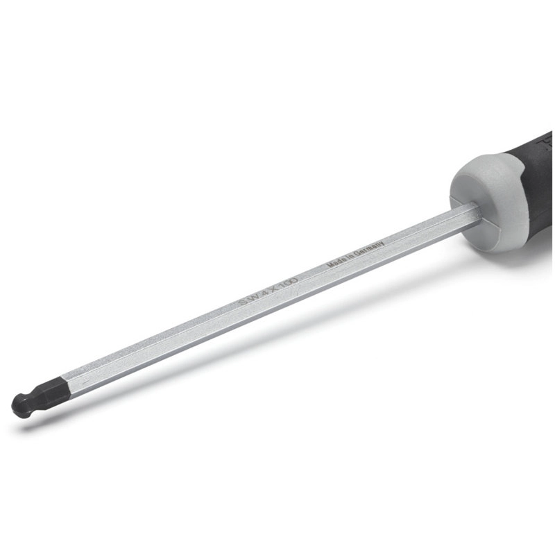 Wkrętak z końcówką kulkową sześciokątną do użytku profesjonalnego, opracowany wspólnie z rzemieślnikami. Ergonomiczna konstrukcja zapewniająca optymalny komfort pracy. Długa, pokryta gumą rękojeść zapewnia przyczepność, precyzję i maksymalne przenoszenie mocy. Wykonana jest z wytrzymałego tworzywa PPC pokrytego odporną na zużycie i łatwą do chwytania gumą. Trwałe oznaczenie typu i rozmiaru na górze rękojeści oraz jej kolor ułatwiają użytkownikowi wybór odpowiedniego wkrętaka. Rękojeść śrubokrętu posiada otwór do zawieszenia lub zabezpieczenia. Jej kształt zapobiega toczeniu się wkrętaka po pochyłych powierzchniach. Grot jest wykonany z wysokiej jakości hartowanej stali zapewniającej trwałość.