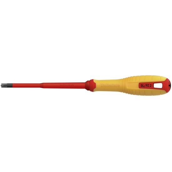 - Wkrętak z kombinowaną końcówką (płaska-Pozidriv) z izolowanym grotem do prac przy instalacjach elektrycznych do 1000 V. Opracowany do użytku profesjonalnego we współpracy z rzemieślnikami.