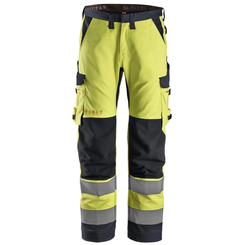 Spodnie ochrony indywidualnej z takimi samymi kieszeniami na obu nogawkach. Te spodnie oferują widzialność zgodną z wymogami normy EN 20471/2, a także ochronę przed gorącem i płomieniem oraz wyładowaniami elektrostatycznymi i łukowymi, na rzecz bezpieczeństwa pracy w strefach szczególnego zagrożenia i w niebezpiecznym otoczeniu.