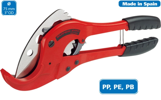 Optymalny zakres pracy! Dokładne cięcie rur z PP, PE, PEX itp. w zakresie do 75 mm. Najwyższa jakość wykonania! Idealna geometria noża pozwala na szybkie i proste cięcie. Ergonomiczny kształt pozwala na łatwą i bezpieczną pracę! NOWE, ULEPSZONE OSTRZE!
