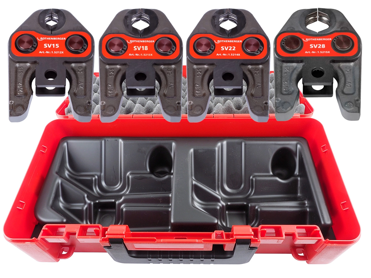 - Szczęki zaciskowe Set Standard, M 15-18-22-28 mm Rothenberger Zestaw 4 standardowych szczęk zaciskowych w walizce systemowej ROCASE. Walizka bez problemu zepnie się z walizką systemową od zaciskarki Romax