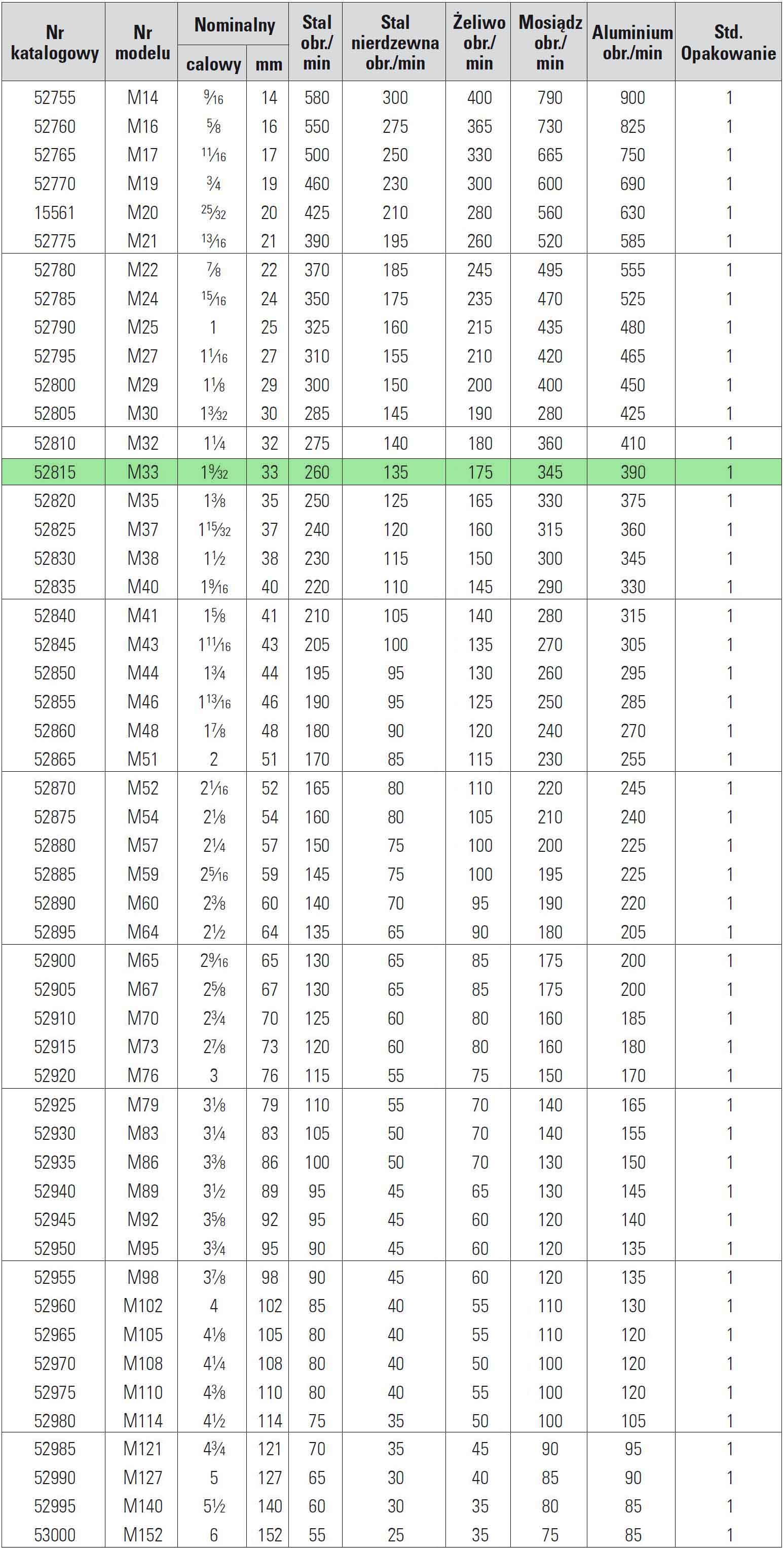- uzębienie o zmiennym skoku 3/5 zębów na cal
