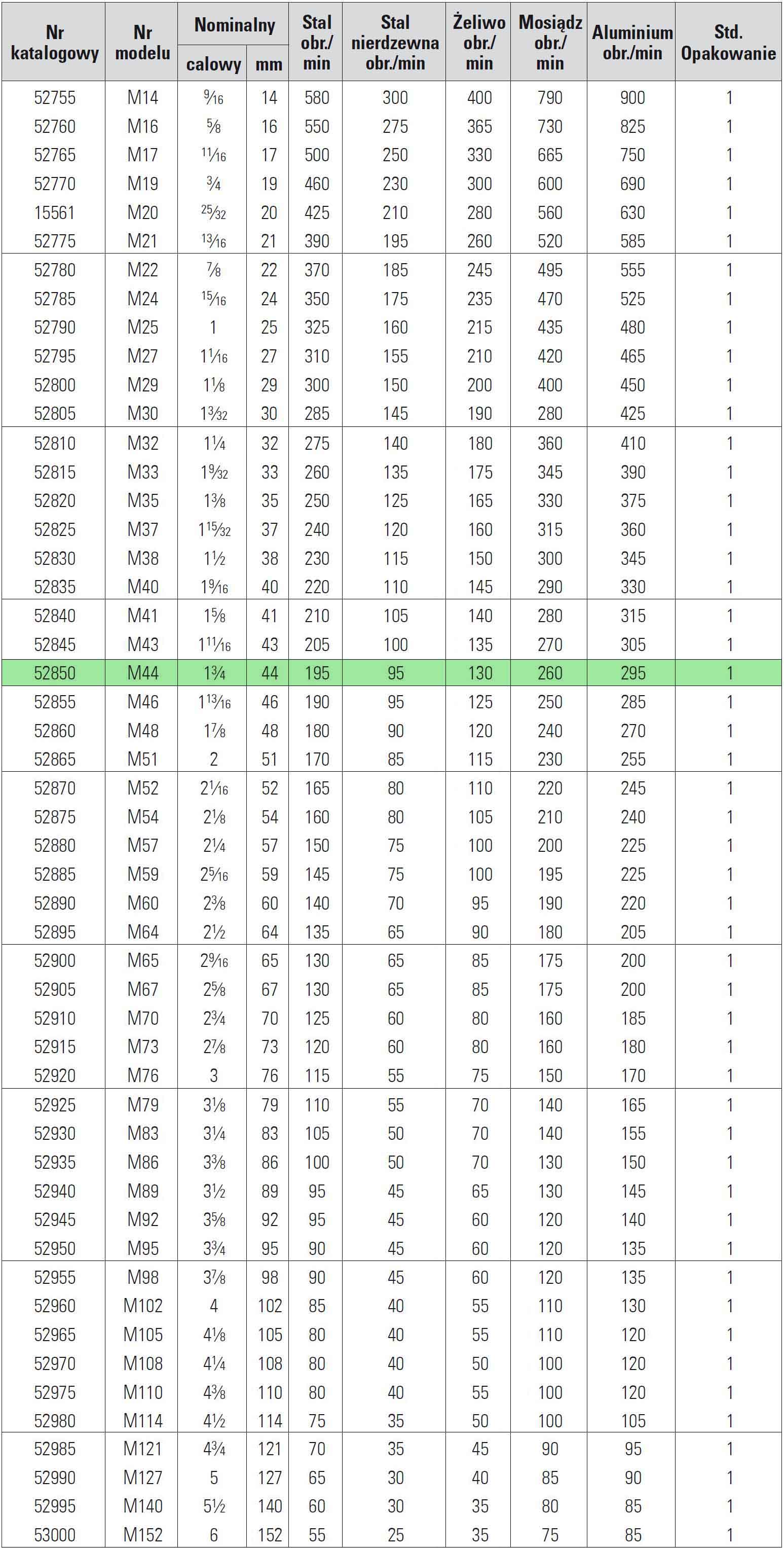 - uzębienie o zmiennym skoku 3/5 zębów na cal