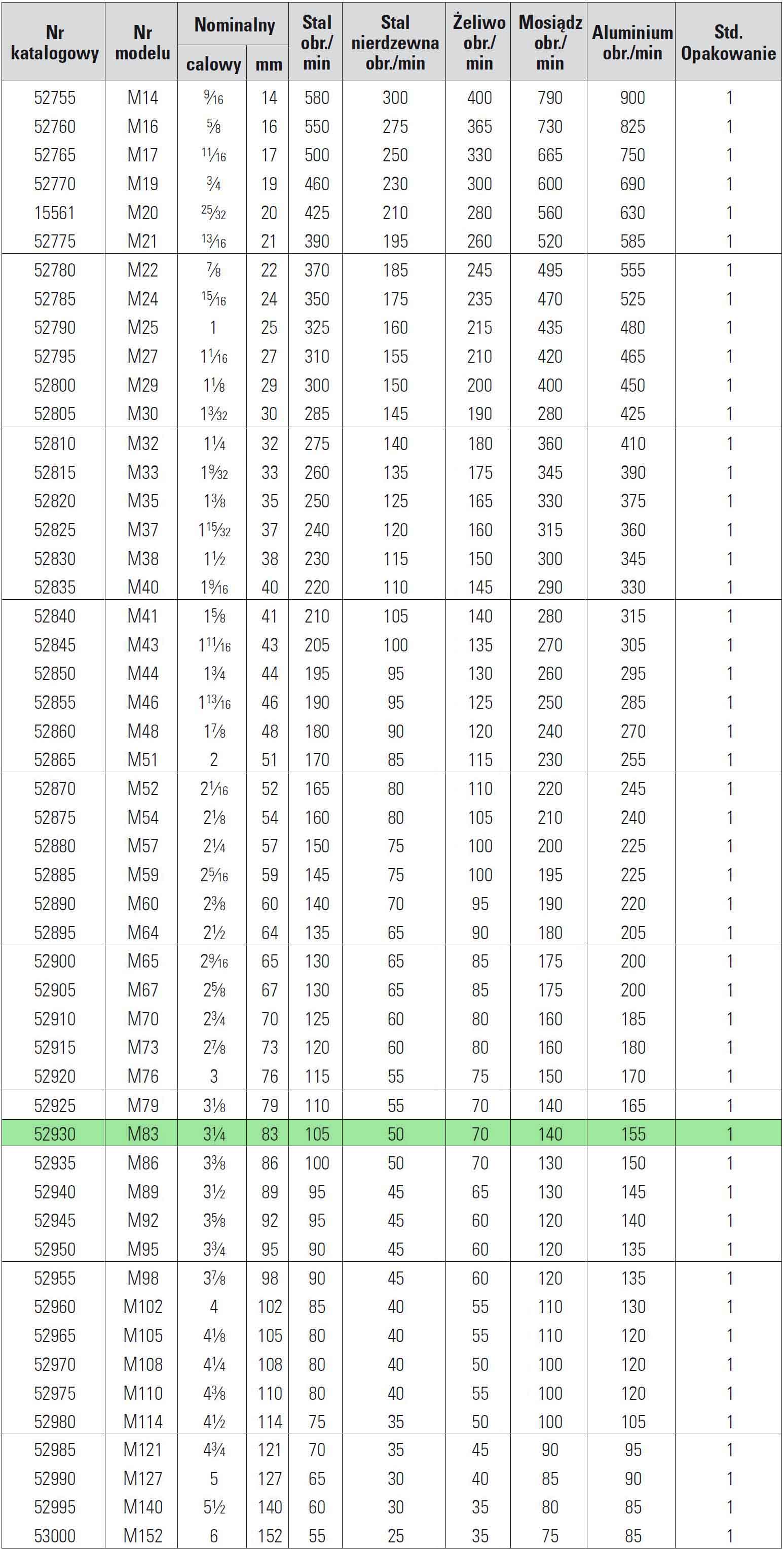 - uzębienie o zmiennym skoku 3/5 zębów na cal