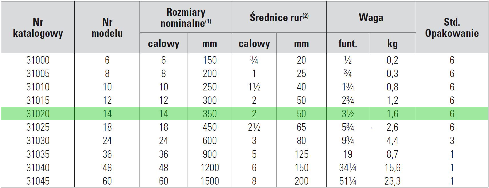 (2) Średnice rur = maksymalna nominalna szerokość rury stalowej.