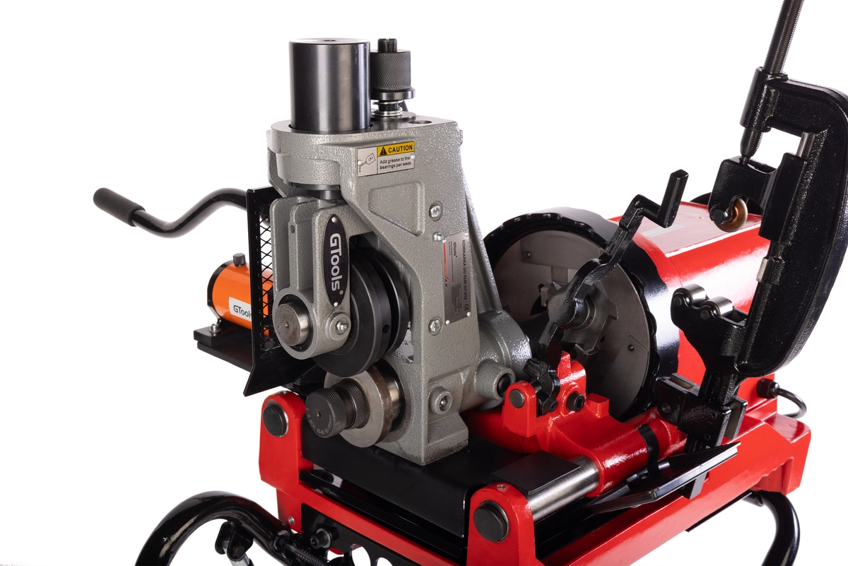 Jakie jeszcze zalety ma rowkarka Gtools GT-212? Montaż do napędu jest szybki i prosty, pozwala szybko rozpocząć pracę. Możliwa jest też szybka wymiana rolek, znacznie zwiększająca wydajność pracy. Przystawka może być również łatwo dostosowana pod każdą gwinciarkę.
