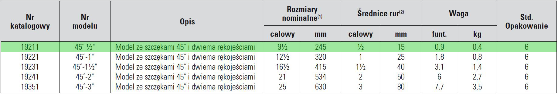 (1) Rozmiar nominalny = długość uchwytu.