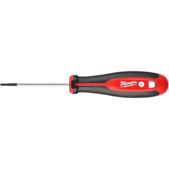 - Spłaszczony z 3 stron kołnierz na rękojeści zapobiega przetaczaniu się wkrętaka.