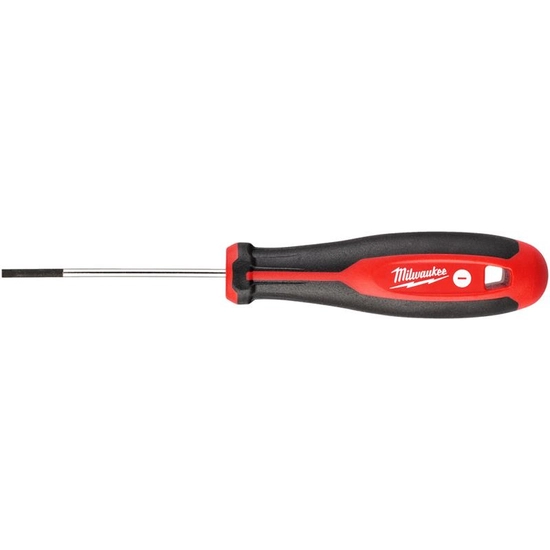 - Spłaszczony z 3 stron kołnierz na rękojeści zapobiega przetaczaniu się wkrętaka.