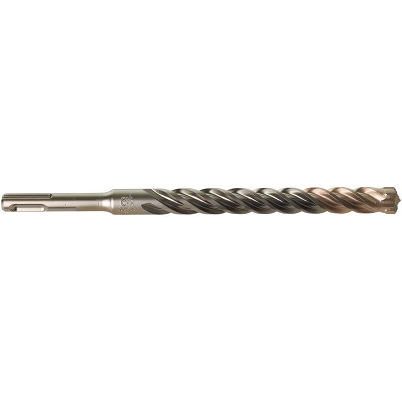 - Wierzchołek centrujący ułatwia rozpoczęcie wiercenia. Geometria widii 4x90° gwarantuje doskonale gładkie otwory oraz redukuje ryzyko zakleszczenia się wiertła przy natrafieniu na pręt zbrojeniowy.