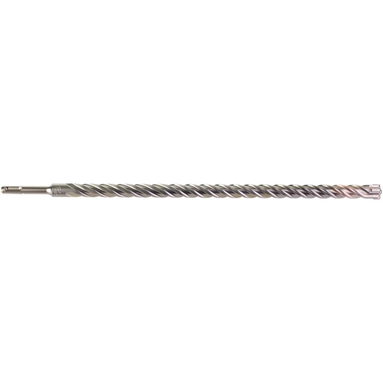 - Wierzchołek centrujący ułatwia rozpoczęcie wiercenia. Geometria widii 4x90° gwarantuje doskonale gładkie otwory oraz redukuje ryzyko zakleszczenia się wiertła przy natrafieniu na pręt zbrojeniowy.