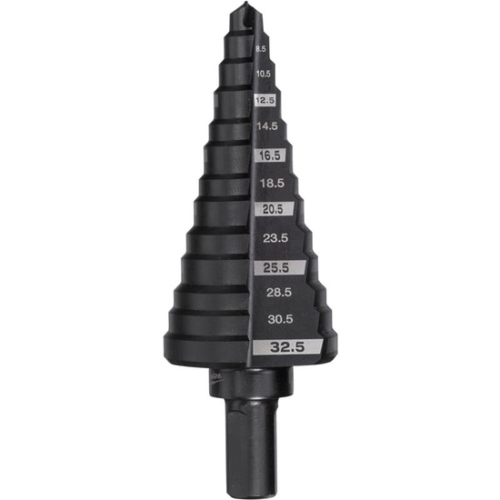 - Zalety wierteł stopniowych w porównaniu z wietłami tradycyjnymi: - Jedno wiertło wykonuje otwory o różnej średnicy - Więcej możliwości, a mniej noszenia! - Najlepszy sposób na powiększenie istniejącego otworu. - Rdzeń jest nieskręcony i grubszy, a zatem mniej podatny na złamanie. - Dokładniejsze pozycjonowanie otworu, gdyż końcówka wierci natychmiast. - Otwory bez zadziorów, niepotrzebny rozwiertak. - Wiercenie w plastiku bez pęknięć.