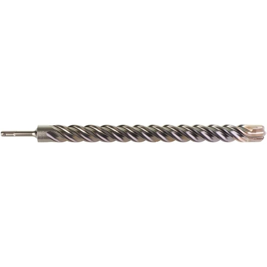 - Wierzchołek centrujący ułatwia rozpoczęcie wiercenia. Geometria widii 4x90° gwarantuje doskonale gładkie otwory oraz redukuje ryzyko zakleszczenia się wiertła przy natrafieniu na pręt zbrojeniowy.