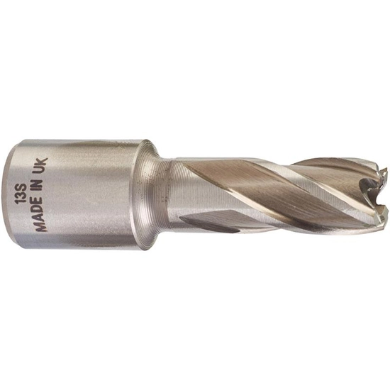 - 100 % szybsze - Oszczędność czasu możemy osiągnąć dzięki następującym czynnikom: Po pierwsze, frez pierścieniowy tnie materiał tylko na krawędzi, przeciwnie do wiertła krętego, który tnie całkowitą średnicę. Po drugie, dwa agresywne kąty ostre, poprzez krawędź skrawającą zwiększają szybkość wiercenia i zmniejszają opór.