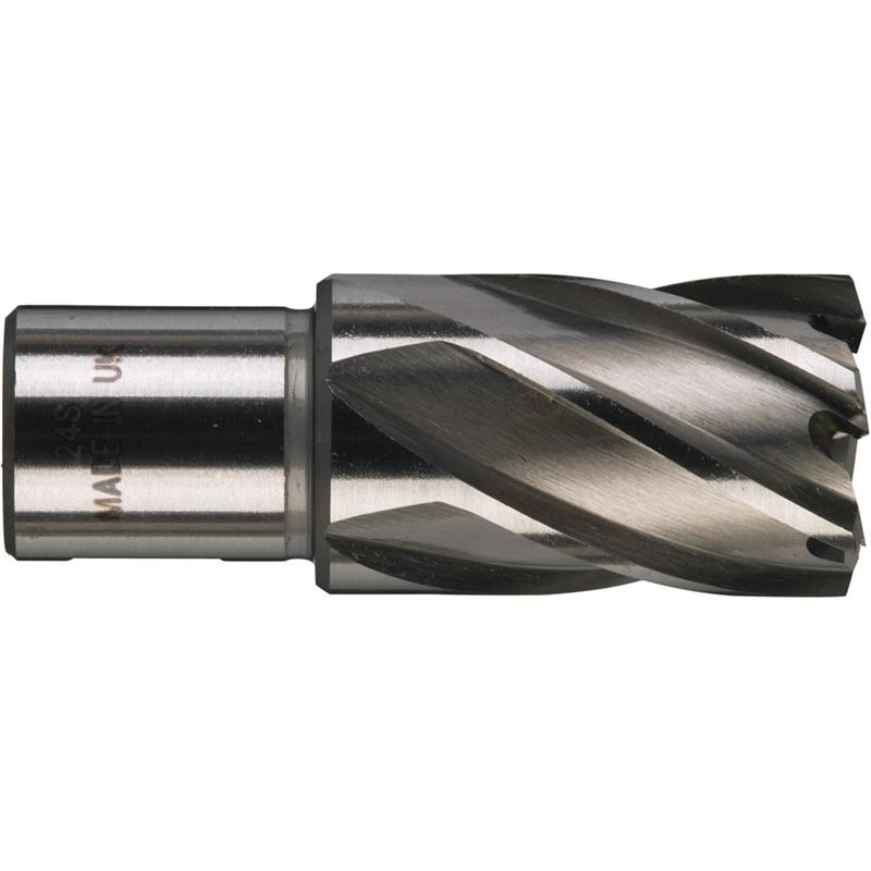 - 30 % większa produktywność - Ponieważ frez pierścieniowy tylko na krawędzi otworu tnie materiał. Wymagana jest mniejsza energia silnika i moc napędowa. Im większa średnica wiertła, tym większa oszczędności energii.